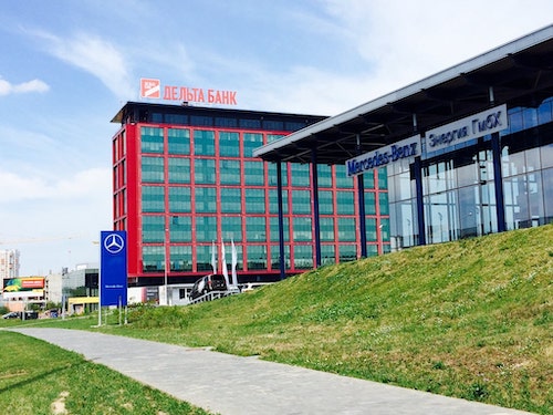 Удобная транспортная развязка улицы Тимирязева и проспект Пушкина. Установки гарантийных машин Mercedes Benz и площадка для установки систем на грузовые и легковые автомобили